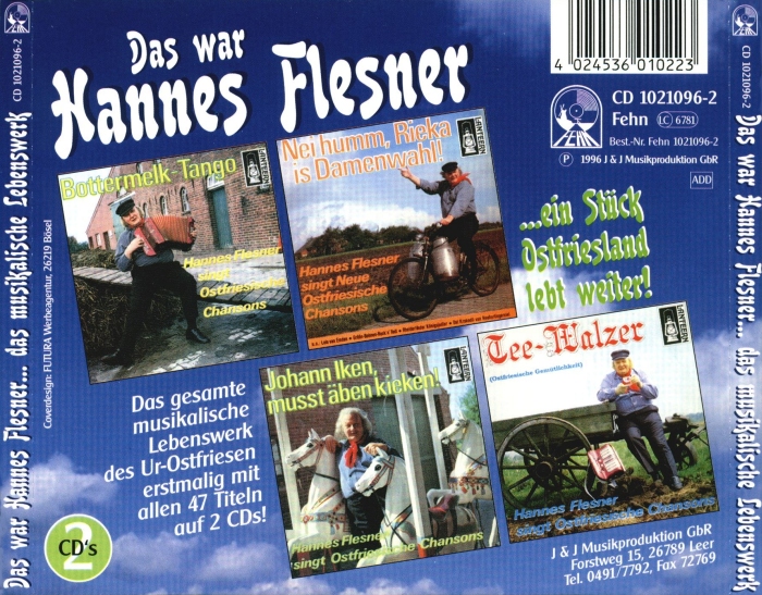 Erst heute, viele jahre nach dem Tod von Hannes Flesner wird deutlich, daß der schwergewichtige Ostfriese mit seinen tiefsinnigen Texten in unverfälschtem original ostfriesischem Platt der Zeit weit voraus war. Der Inhalt vieler seiner Lieder ist heute aktueller denn je!