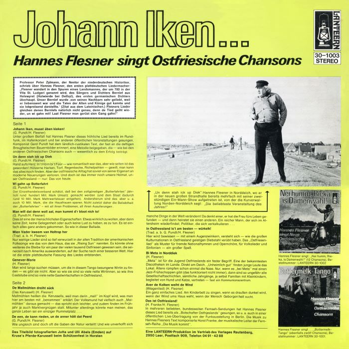 Professor Peter Zylmann, der Nestor der niederdeutschen Historiker, schrieb über Hannes Flesner, den ersten plattdeutschen Liedermacher: "Flesner wandert in den Spure eines Landsmannes, der um 780 in der Vita St. Ludgeri genannt wird, des Sängers und Dichters Bernlef aus Helewyret (Holwierde bei Delfzyl), des ersten germanischen Dichters überhaupt. Unser Bernlef wurde 'von seinen Nachbarn sehr geliebt, weil er liebenswert war und die Taten der Alten und Könige gut kannte und sie lobpreisend darstellte.' (Zitat aus dem Lateinischen.) Flesners Lieder gleichen denen Bernlefs natürlich nicht genau, denn de Tied geiht wieder, un wi gahn mit! Laat Flesner man gerüst sien Gang gahn!"